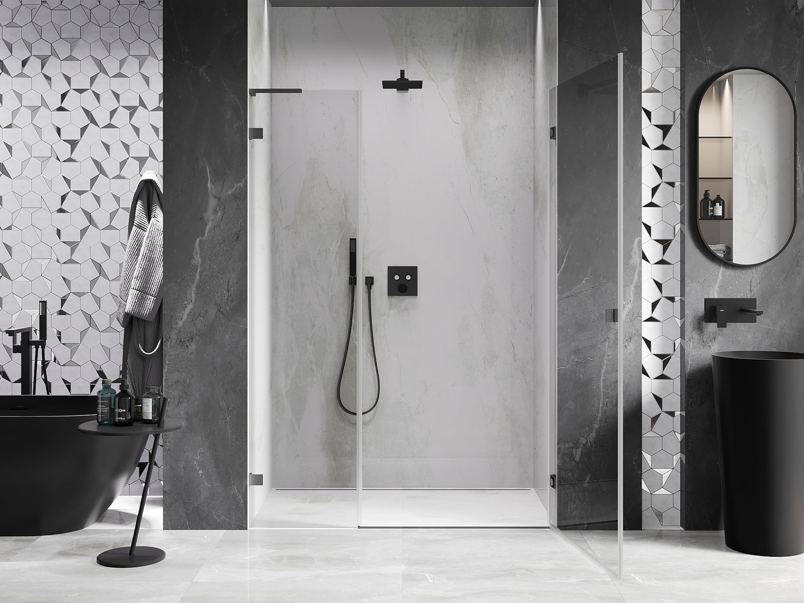 Mexen Lunar-B L labās puses eņģu dušas durvis 125 cm, caurspīdīgas, gun metal krāsā - 832SL-125-050-95-00-P