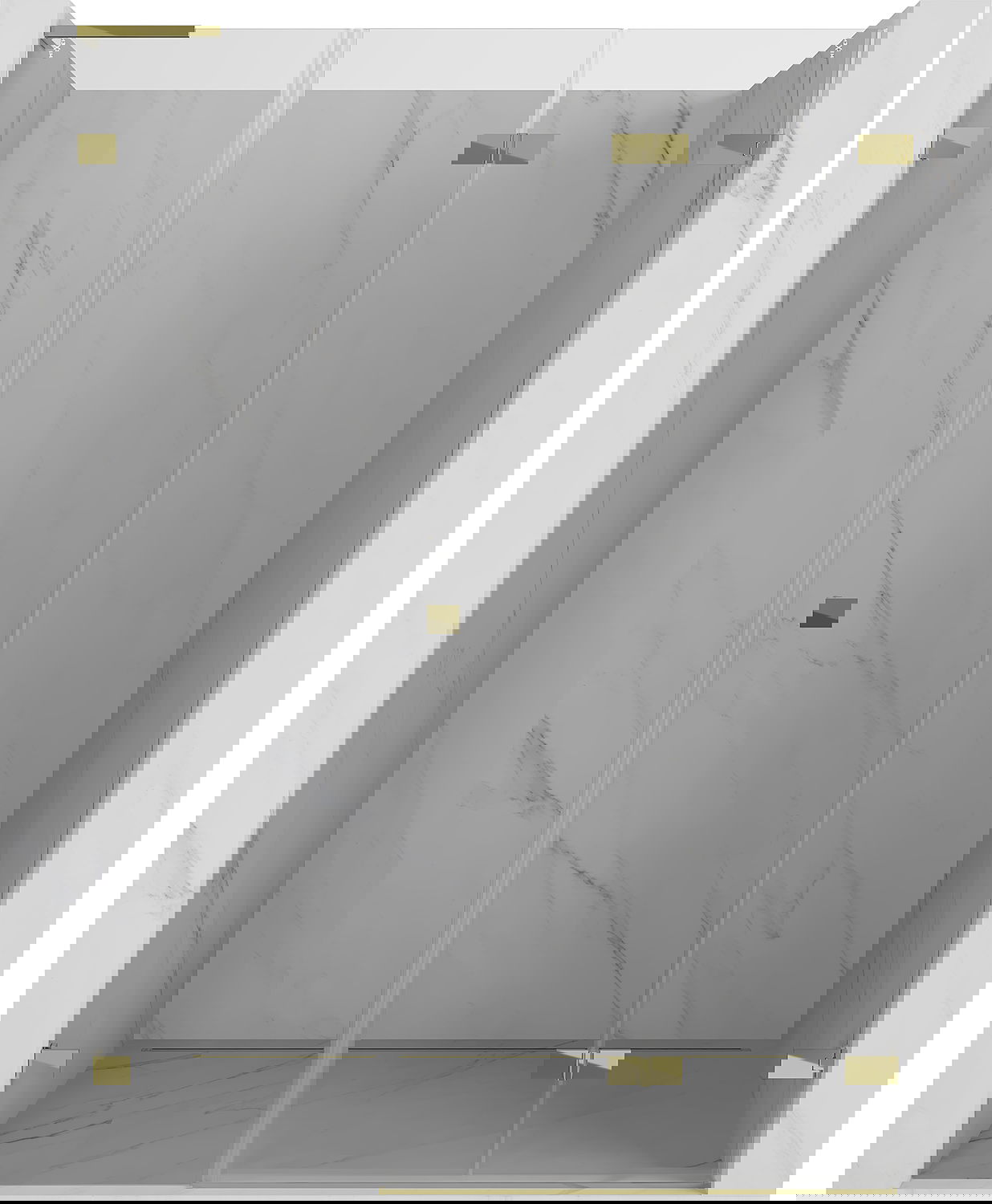 Skavas un eņģes ir izgatavotas no ļoti izturīga misiņa un papildus veido vienā līmenī esošu stikla virsmu. Tas ir lieliska izvēle, kas apvieno eleganci, izturību un modernu dizainu. Šādi risinājumi paaugstina dušas estētiku un vienlaikus atvieglo tīrības uzturēšanu.
