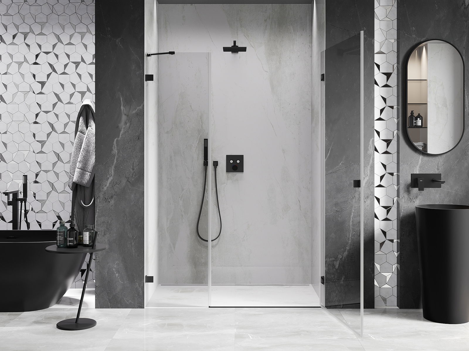 Mexen Lunar-B dušas durvis, atveramas pa labi, 115 cm, caurspīdīgas, melnas - 832S-115-050-70-00-P
