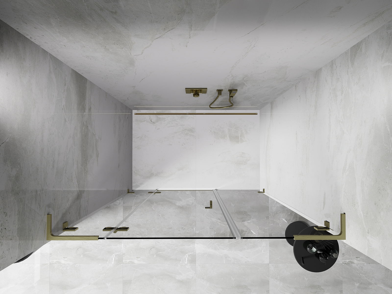 Mexen Lunar L kustības uz āru dušas durvis kreisās 135 cm, caurspīdīgas, zeltaini matētas - 834SL-135-050-55-00-L