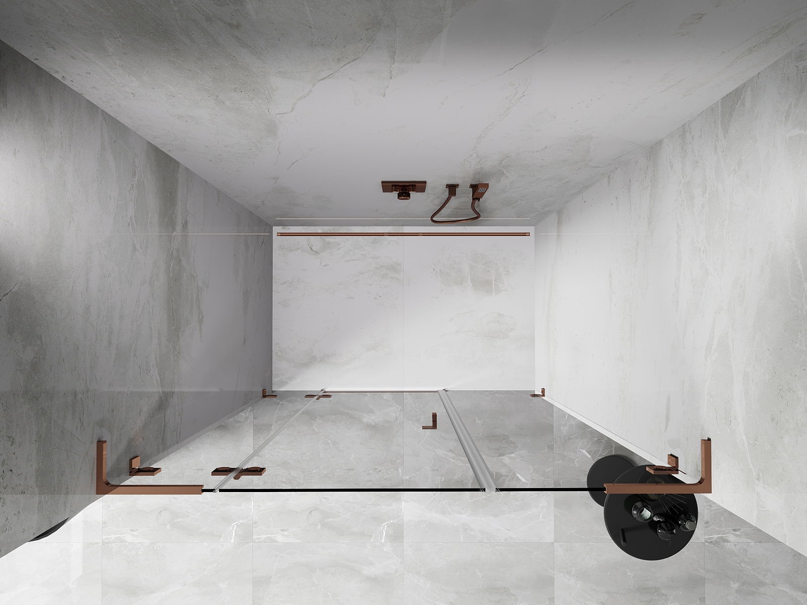 Skavas un eņģes ir izgatavotas no ļoti izturīga misiņa un papildus veido vienā līmenī esošu stikla virsmu. Tas ir lieliska izvēle, kas apvieno eleganci, izturību un modernu dizainu. Šādi risinājumi paaugstina dušas estētiku un vienlaikus atvieglo tīrības uzturēšanu.