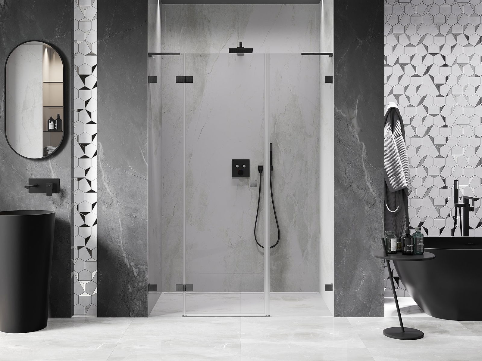 Skavas un eņģes ir izgatavotas no ļoti izturīga misiņa un papildus veido vienā līmenī esošu stikla virsmu. Tas ir lieliska izvēle, kas apvieno eleganci, izturību un modernu dizainu. Šādi risinājumi paaugstina dušas estētiku un vienlaikus atvieglo tīrības uzturēšanu.