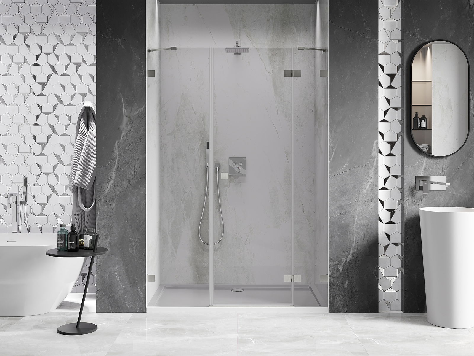 Produktu, atkarībā no vajadzībām, var uzstādīt gan uz dušas paliktņa, gan tieši uz grīdas. Universālā montāžas metode ļauj pielāgot produktu dažāda veida vannas istabām un telpas konfigurācijām.
