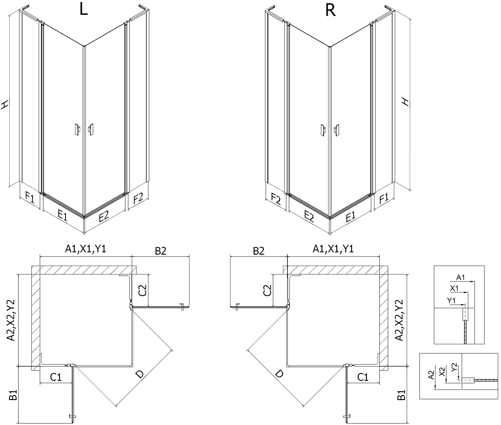 Pateicoties universālās stiprinājumu sistēmas izmantošanai, dušas durvis var tikt uzstādītas no labās vai kreisās puses atkarībā no vajadzībām. Tādejādi vari viegli izplānot dušu, kas pielāgota vannas istabas telpai.