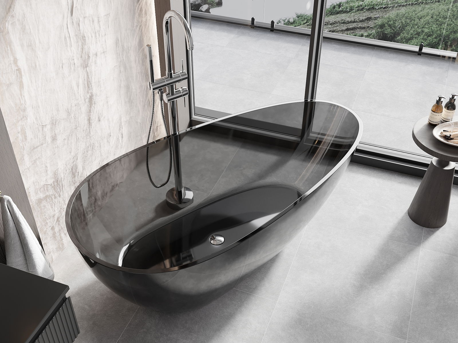 Tas ir mūsdienīgs materiāls, kas apvieno elegantu izskatu ar augstu izturību. Tas ir izturīgs pret mehāniskiem bojājumiem, viegli tīrāms un patīkams pieskārienam. Caurspīdīgā forma un plānais vannas malas dizains piešķir tai vieglumu un unikālu raksturu, radot iespaidīgu akcentu vannas istabas iekārtojumā.