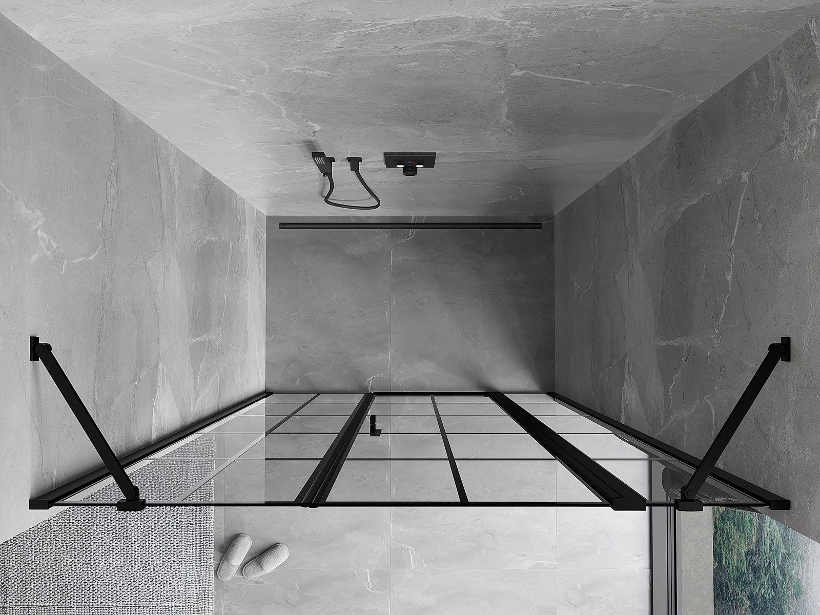Mexen Mist dušas durvis, kas virinās pa labi, 155 cm, melns režģis, melns - 8A4-155-001-70-77-P