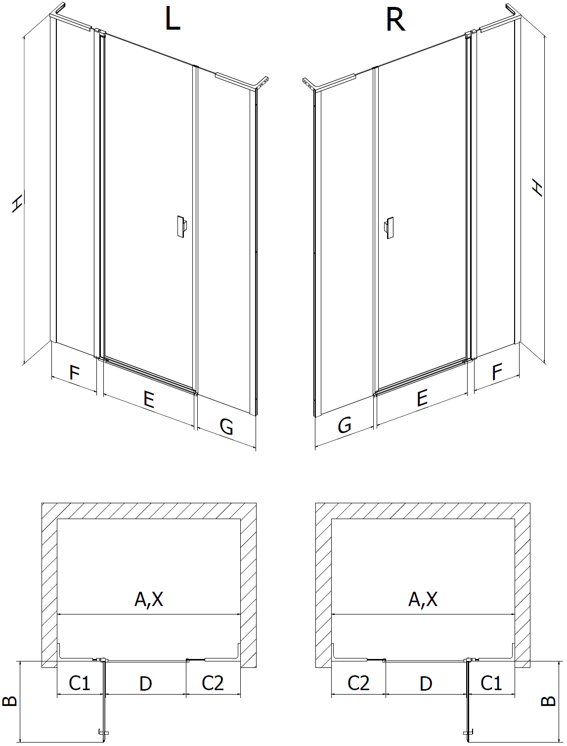 Pateicoties universālās stiprinājumu sistēmas izmantošanai, dušas durvis var tikt uzstādītas no labās vai kreisās puses atkarībā no vajadzībām. Tādejādi vari viegli izplānot dušu, kas pielāgota vannas istabas telpai.