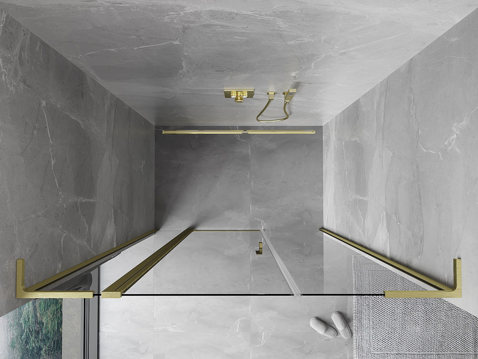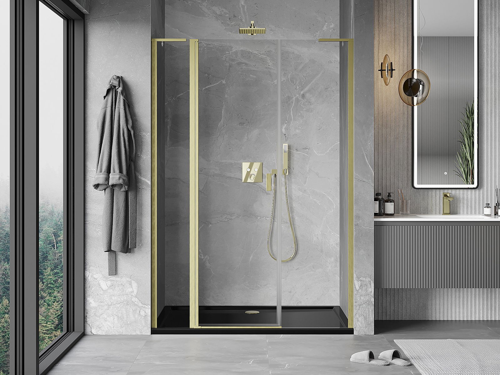 Mexen Mist L atveramas dušas durvis 150 cm, caurspīdīgas, zeltītas matētas - 8A4L-150-001-55-00