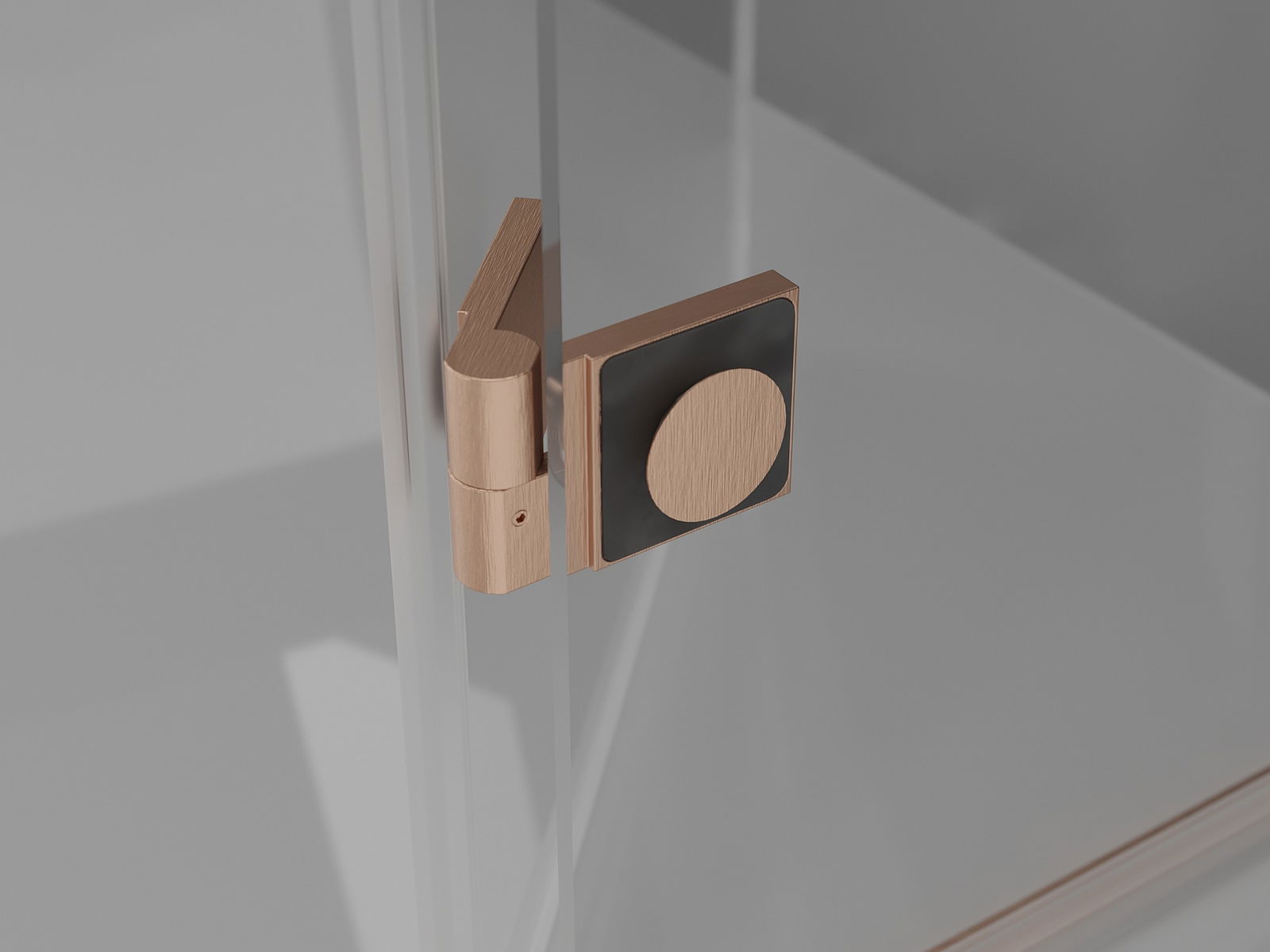Misiņa eņģes vienā līmenī ar stikla paneli