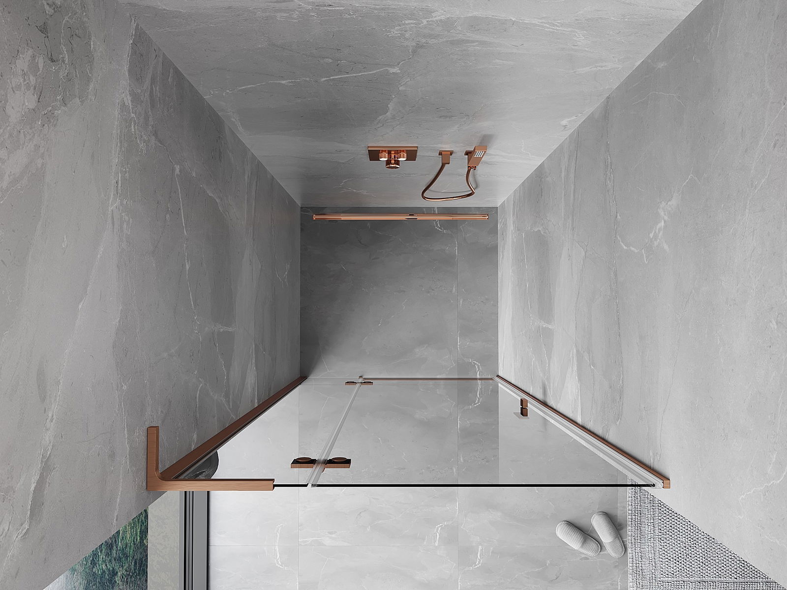 Mexen Mist-H L kreisās atveramās dušas durvis 110 cm, caurspīdīgas, matēta vara - 8A5L-110-000-65-00-L