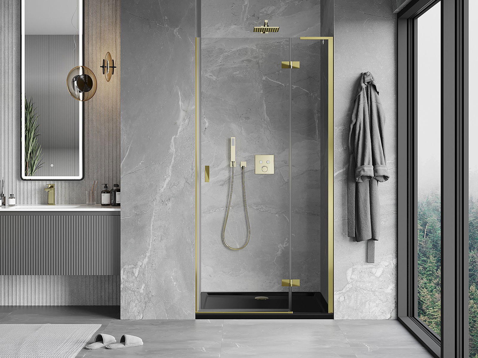 Mexen Mist-H L dušas durvis ar labās puses veramību, 80 cm, caurspīdīgas, zelta - 8A5L-080-000-50-00-P