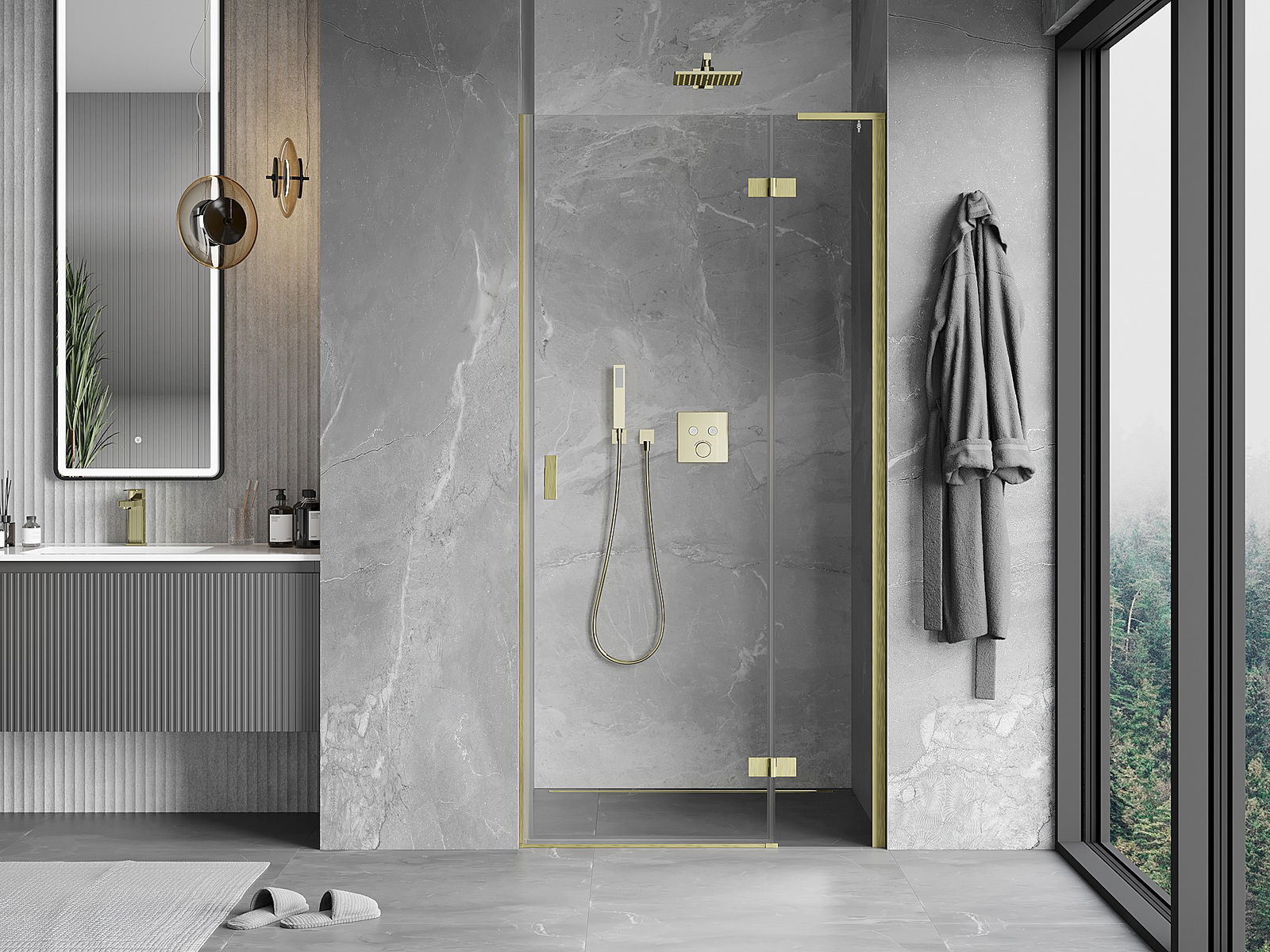 Mexen Mist-H L labās puses dušas durvis 75 cm, caurspīdīgas, zelta matētas - 8A5L-075-000-55-00-P