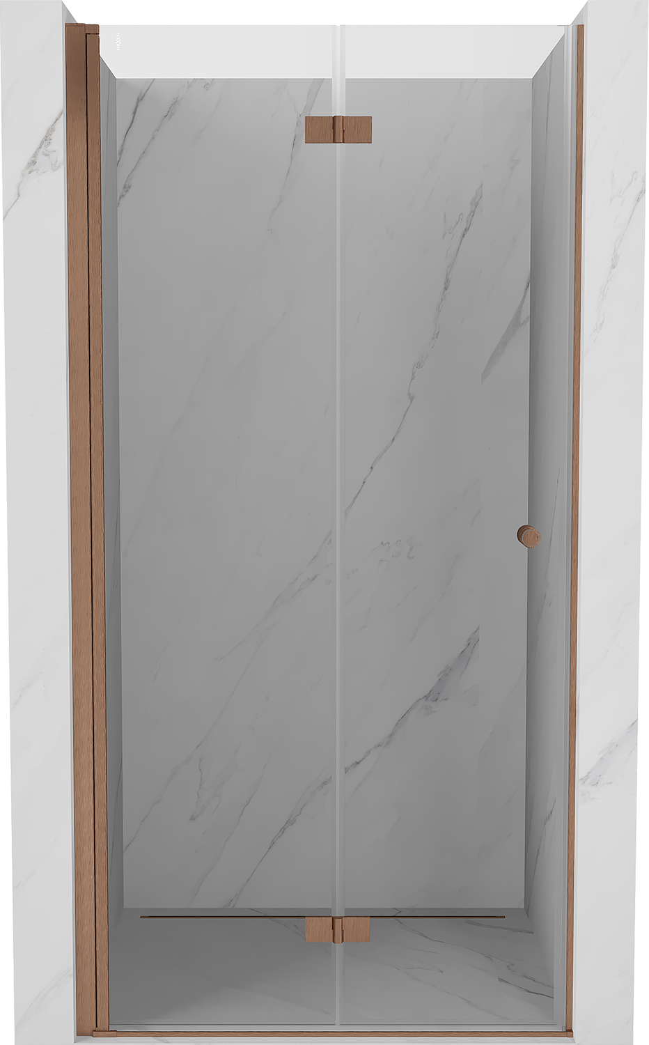 Mexen Mist-F salokāmas dušas durvis kreisās 75 cm, caurspīdīgas, matēts varš - 8A6-075-000-65-00-L