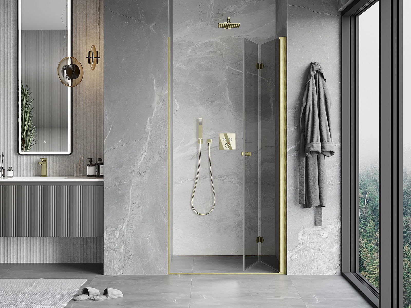 Iespēja salocīt durvis gan uz āru, gan uz iekšpusi, ļauj iegūt vairāk vietas, kad duša netiek izmantota. Tas ir ideāls risinājums mazākām vannas istabām, maksimāli izmantojot pieejamo telpu.