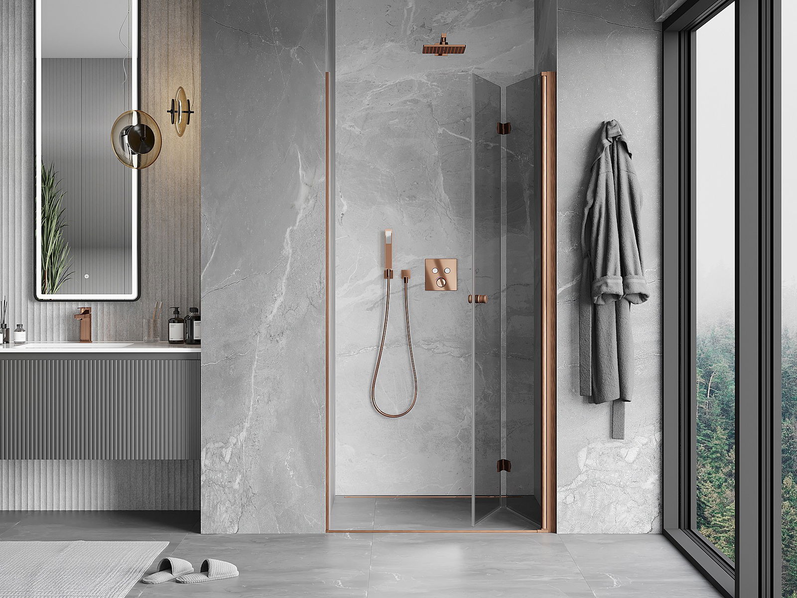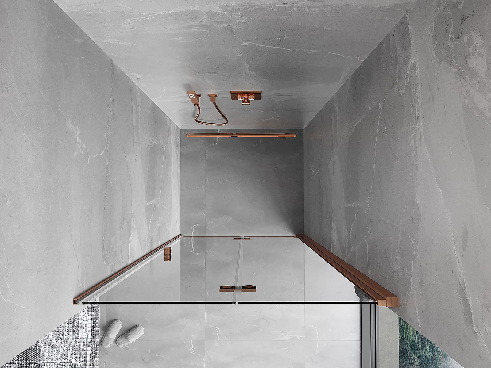 Mexen Mist-F saliekamas dušas durvis, labās 95 cm, caurspīdīgs, matēta varš - 8A6-095-000-65-00-P