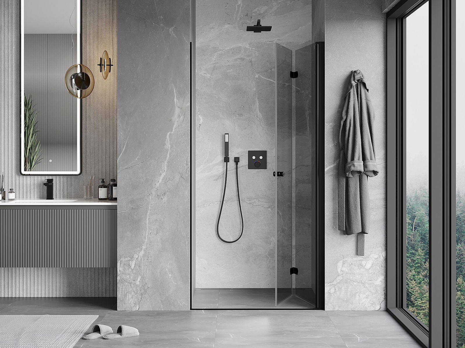 Mexen Mist-F loču durvis, salokāmas labās 115 cm, caurspīdīgas, melnas - 8A6-115-000-70-00-P