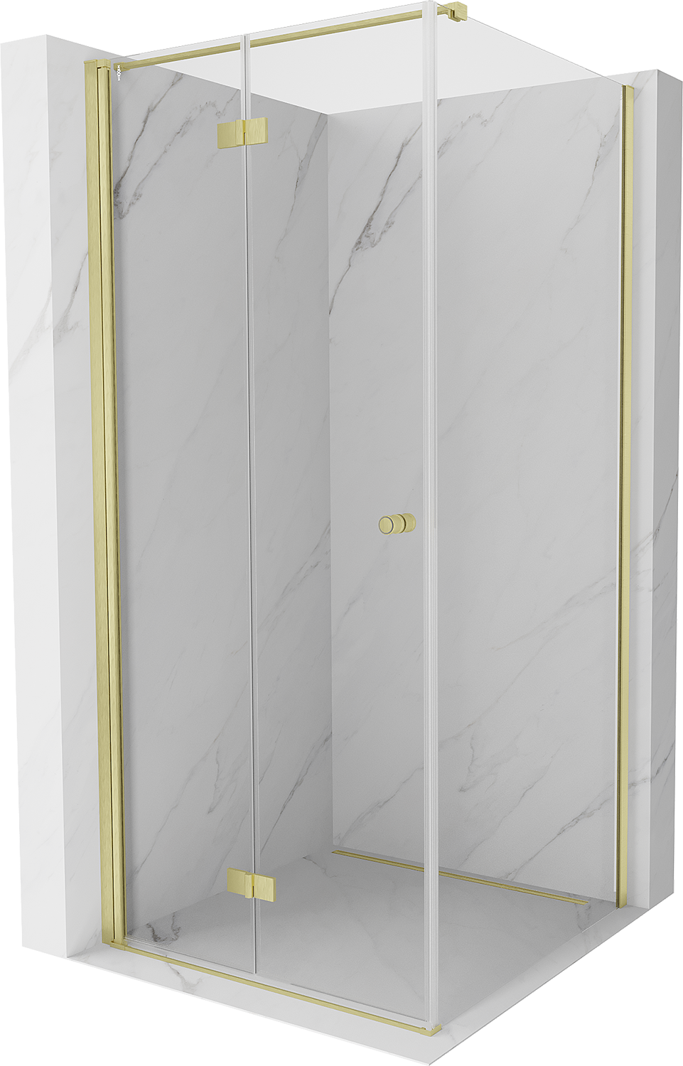Mexen Mist-F salokāma dušas kabīne kreisā 80 x 80 cm, caurspīdīga, zelta matēta - 8A6T-080-080-55-00-L