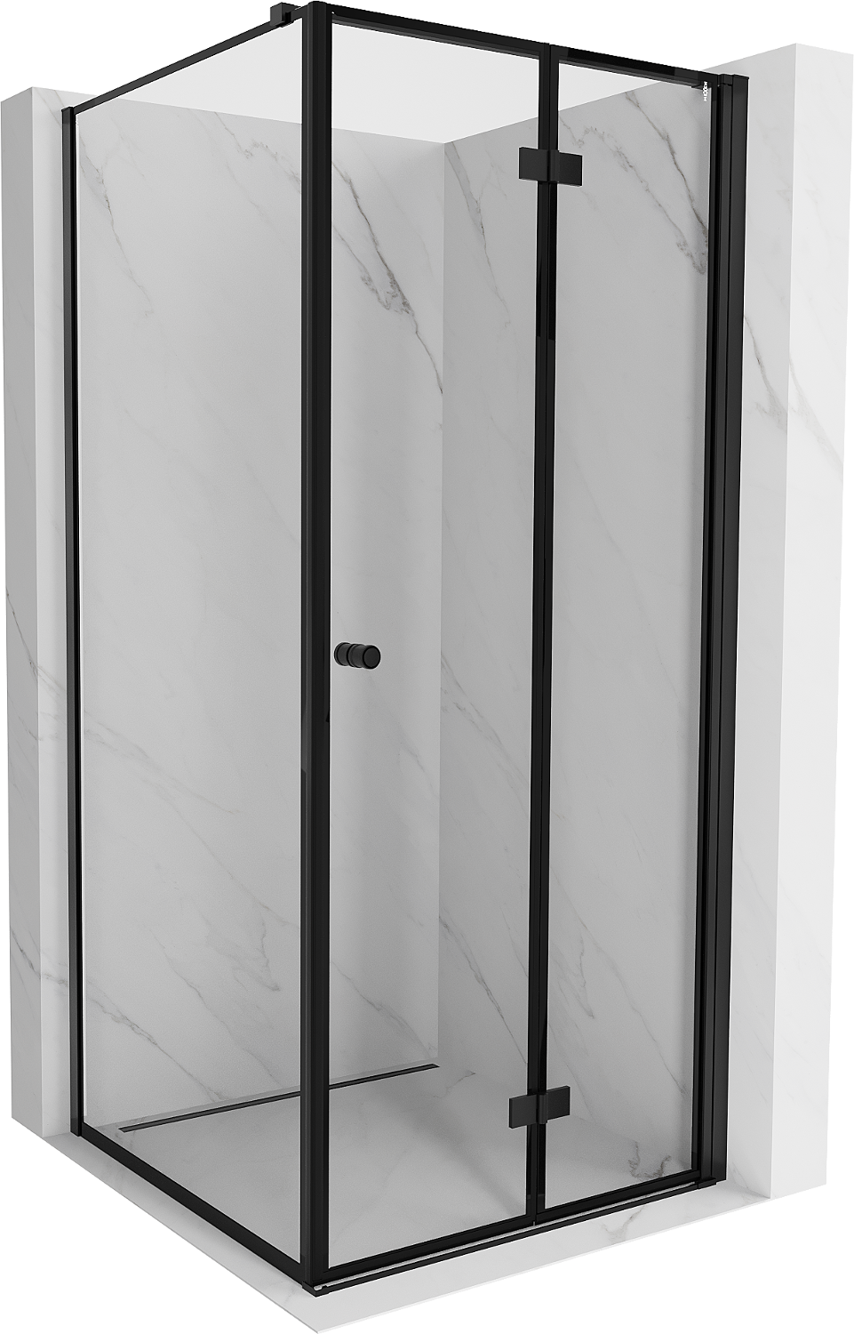Mexen Mist-F salokāma dušas kabīne, labā, 80 x 80 cm, melns rāmis, melna - 8A6T-080-080-70-70-P