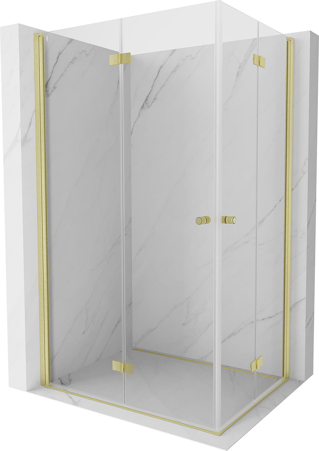 Mexen Mist-F Divkāršā dušas kabīne, saliekama kreisā, 80 x 75 cm, caurspīdīga, matēta zelta krāsā - 8A6-080L-075P-55-00