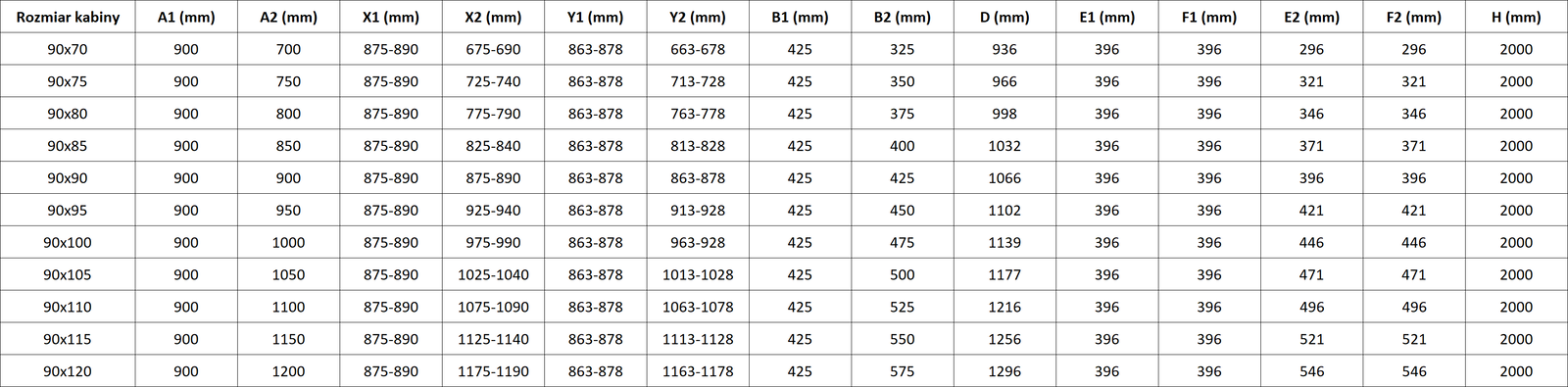 Izmērs: 90x90 cm (kreisās durvis 90 cm, labās durvis 90 cm)