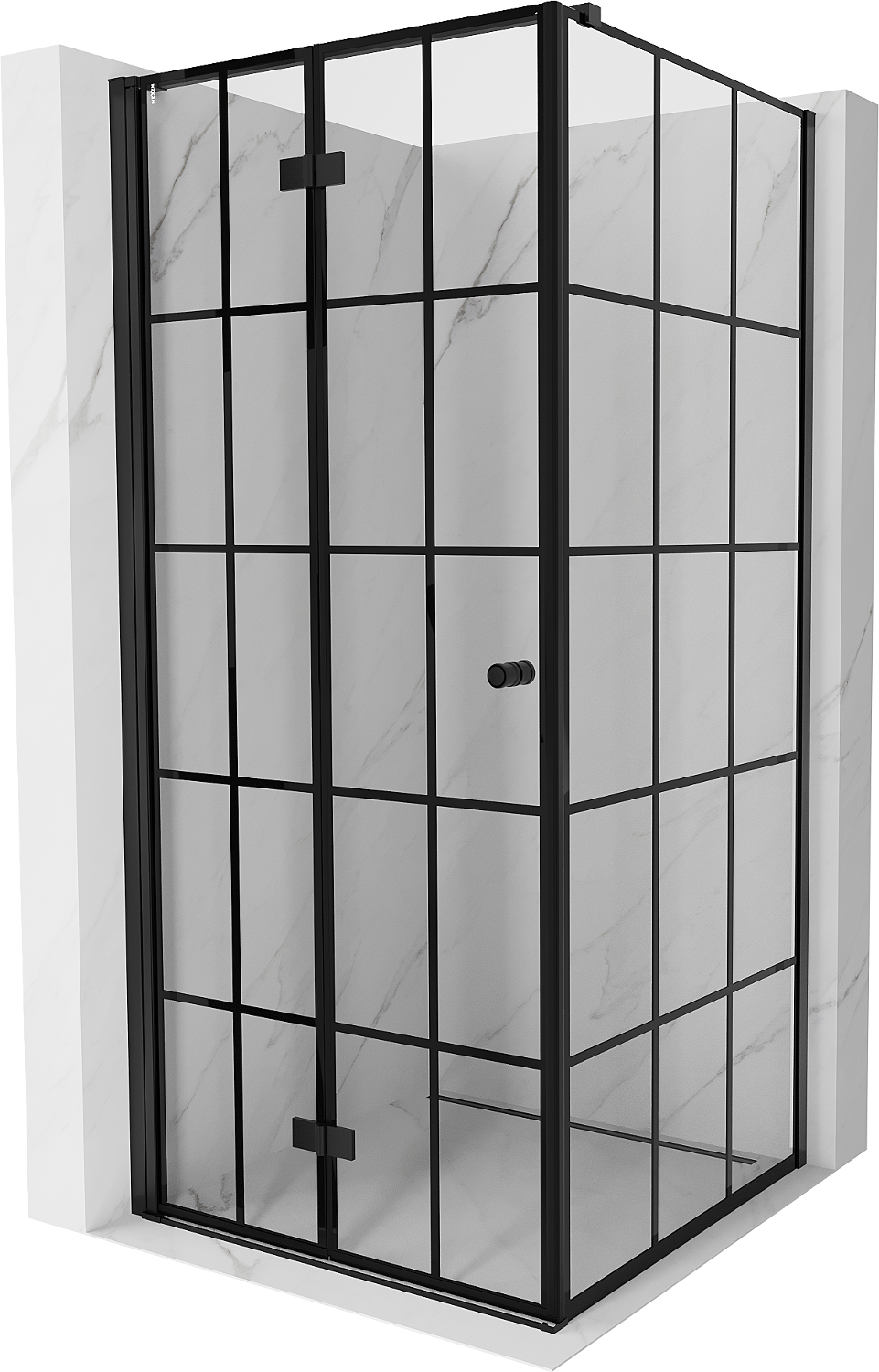 Mexen Mist-F salokāma dušas kabīne kreisā 95 x 95 cm, melnā režģis, melnā - 8A6T-095-095-70-77-L