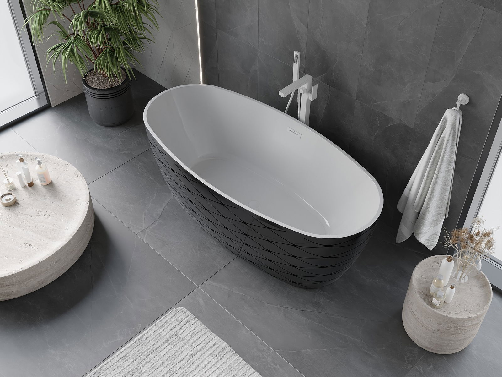 Tas ir mūsdienīgs materiāls, kas apvieno elegantu izskatu ar augstu izturību. Tas ir izturīgs pret mehāniskiem bojājumiem, viegli tīrāms un patīkams pieskārienam. Caurspīdīgā forma un plānais vannas malas dizains piešķir tai vieglumu un unikālu raksturu, radot iespaidīgu akcentu vannas istabas iekārtojumā.