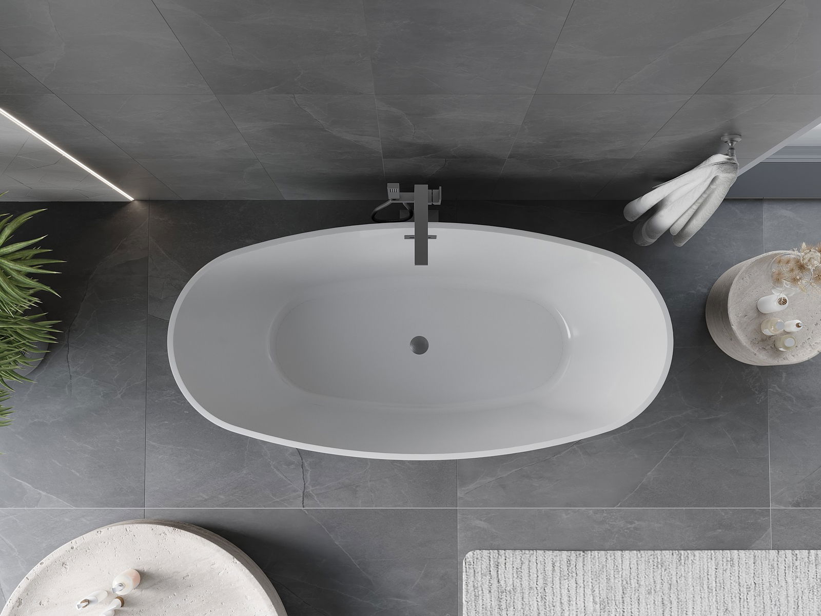 Tas ir mūsdienīgs materiāls, kas apvieno elegantu izskatu ar augstu izturību. Tas ir izturīgs pret mehāniskiem bojājumiem, viegli tīrāms un patīkams pieskārienam. Caurspīdīgā forma un plānais vannas malas dizains piešķir tai vieglumu un unikālu raksturu, radot iespaidīgu akcentu vannas istabas iekārtojumā.