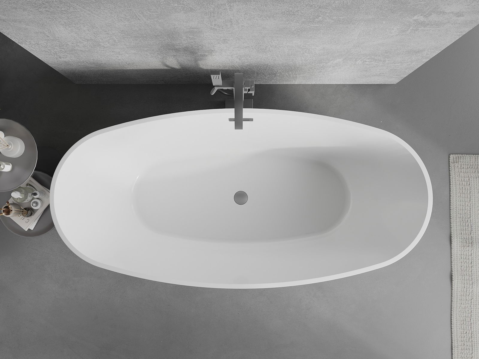 Tas ir mūsdienīgs materiāls, kas apvieno elegantu izskatu ar augstu izturību. Tas ir izturīgs pret mehāniskiem bojājumiem, viegli tīrāms un patīkams pieskārienam. Caurspīdīgā forma un plānais vannas malas dizains piešķir tai vieglumu un unikālu raksturu, radot iespaidīgu akcentu vannas istabas iekārtojumā.