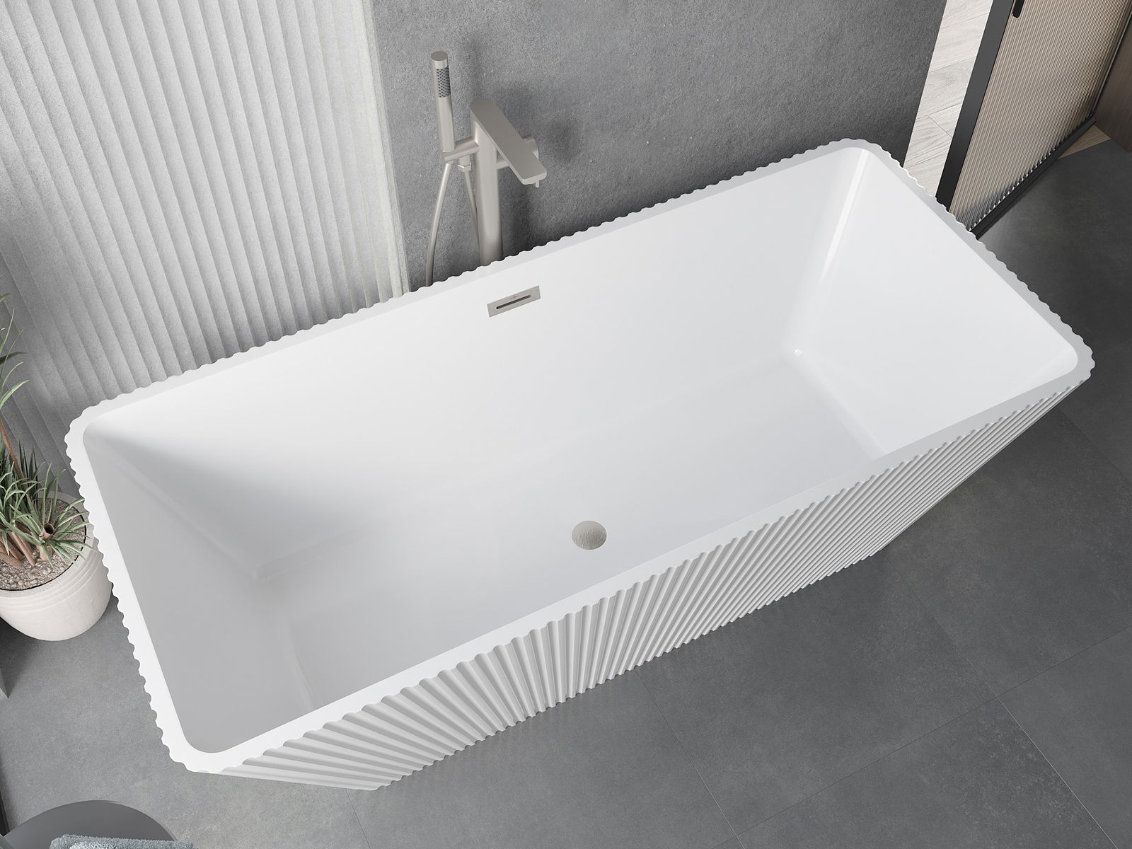 Tas ir mūsdienīgs materiāls, kas apvieno elegantu izskatu ar augstu izturību. Tas ir izturīgs pret mehāniskiem bojājumiem, viegli tīrāms un patīkams pieskārienam. Caurspīdīgā forma un plānais vannas malas dizains piešķir tai vieglumu un unikālu raksturu, radot iespaidīgu akcentu vannas istabas iekārtojumā.