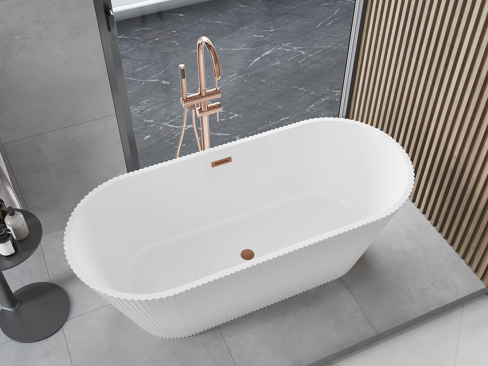 Tas ir mūsdienīgs materiāls, kas apvieno elegantu izskatu ar augstu izturību. Tas ir izturīgs pret mehāniskiem bojājumiem, viegli tīrāms un patīkams pieskārienam. Caurspīdīgā forma un plānais vannas malas dizains piešķir tai vieglumu un unikālu raksturu, radot iespaidīgu akcentu vannas istabas iekārtojumā.