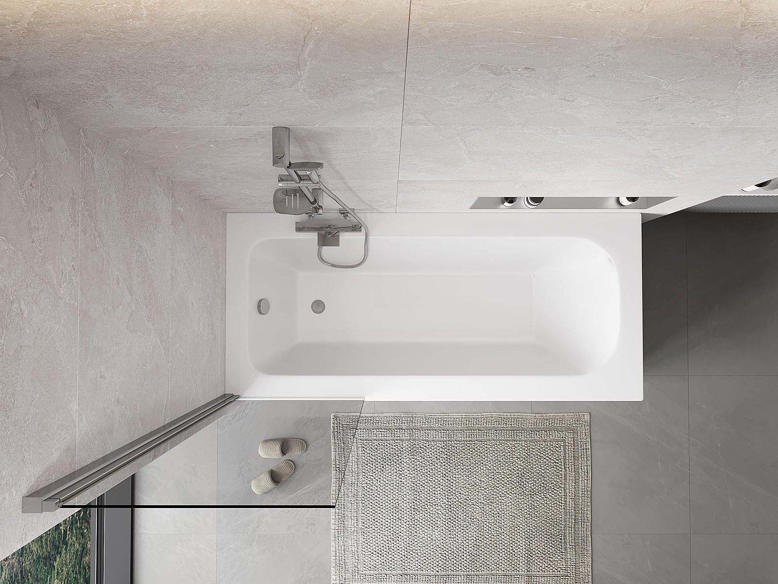Efektīva aizsardzība pret ūdens izšļakstīšanos peldēšanās laikā. Ekrānam ir blīves, kas ideāli pielāgojas stikla virsmai un vannas malai. Funkcionāls risinājums, kas nodrošina drošību un vieglu tīrību.