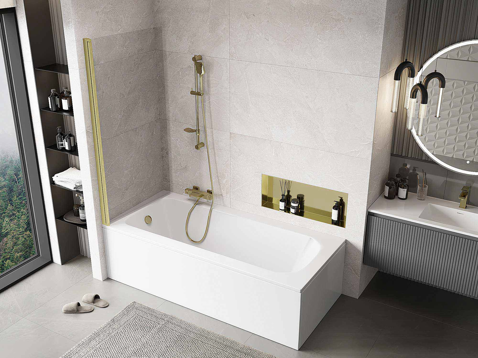Mexen Mist vannas aizslietnis ar 1 vērtni 80 x 150 cm, caurspīdīgs, zelta matēts - 8A9-080-001-55-00