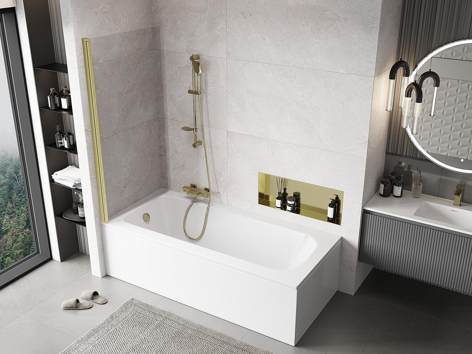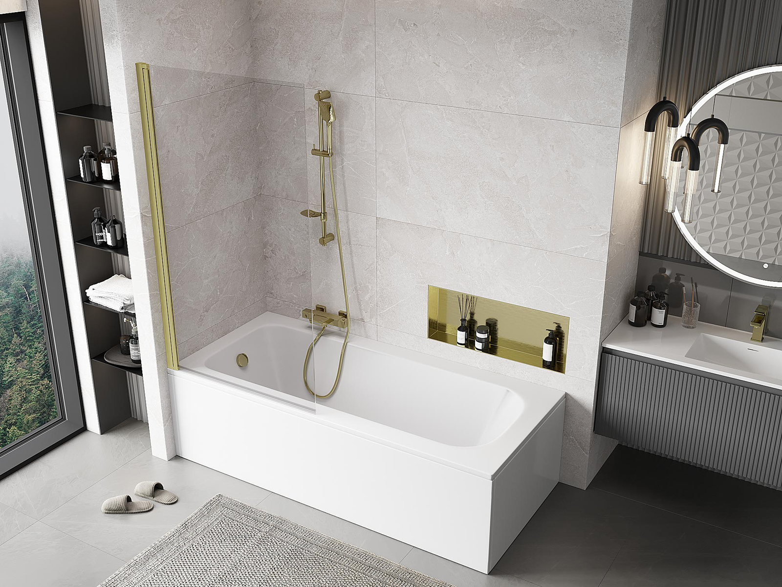 Mexen Mist vannas istabas starpsiena ar vienu sekciju 90 x 150 cm, caurspīdīga, zelta matēta - 8A9-090-001-55-00
