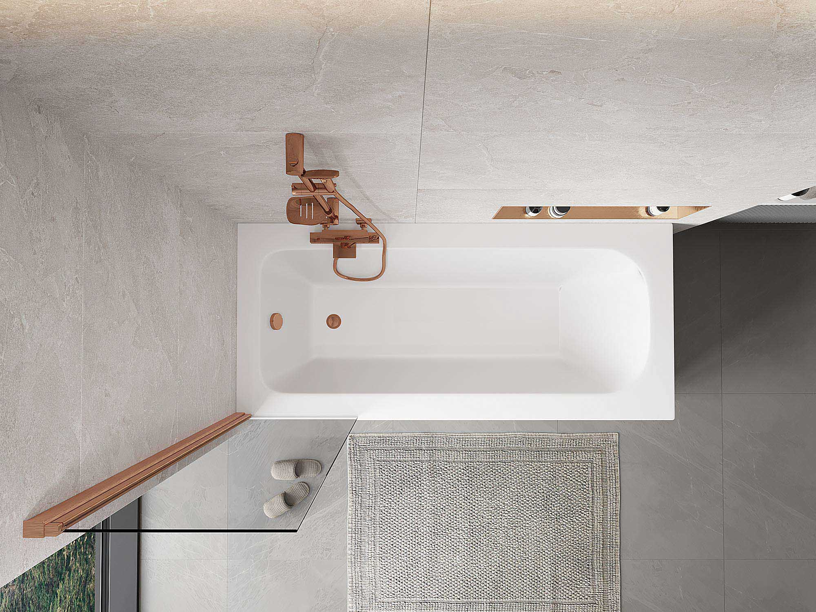 Mexen Mist vienviru vannas ekrāns 50 x 150 cm, caurspīdīgs, matēta vara - 8A9-050-001-65-00