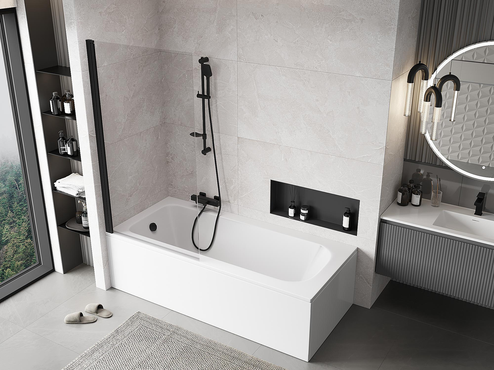 Efektīva aizsardzība pret ūdens izšļakstīšanos peldēšanās laikā. Ekrānam ir blīves, kas ideāli pielāgojas stikla virsmai un vannas malai. Funkcionāls risinājums, kas nodrošina drošību un vieglu tīrību.