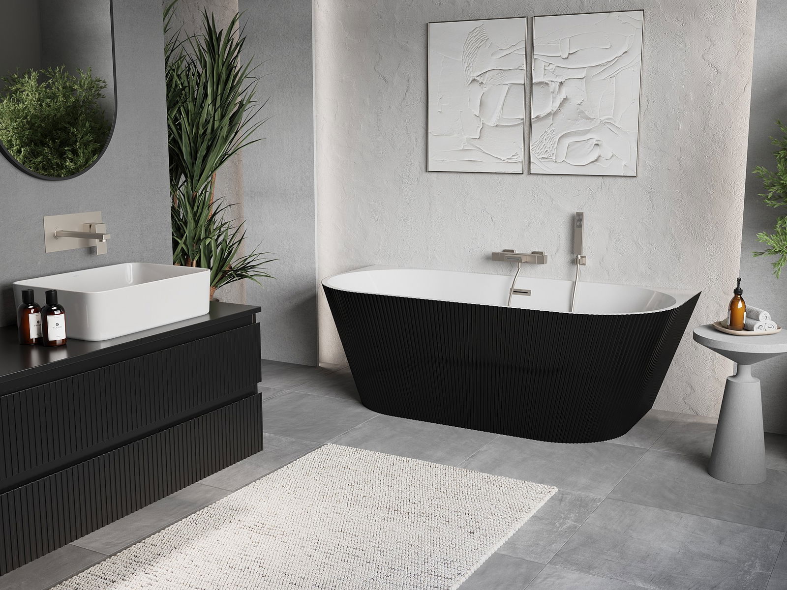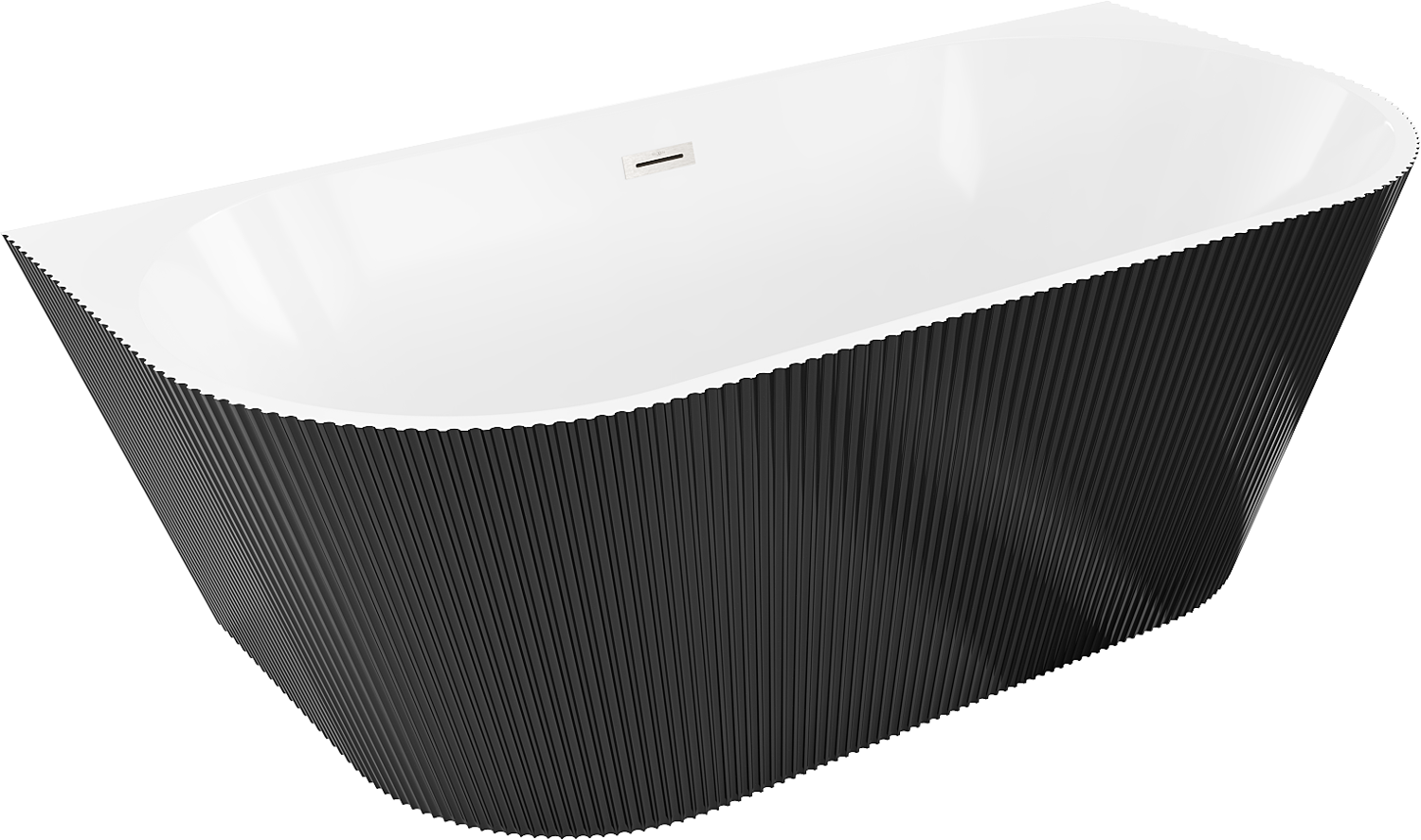 Mexen Oris brīvi stāvoša pie sienas uzstādāma vanna ar rievotu virsmu 170 x 80 cm, balta/melna, nikelis matēts - 52871708075-97