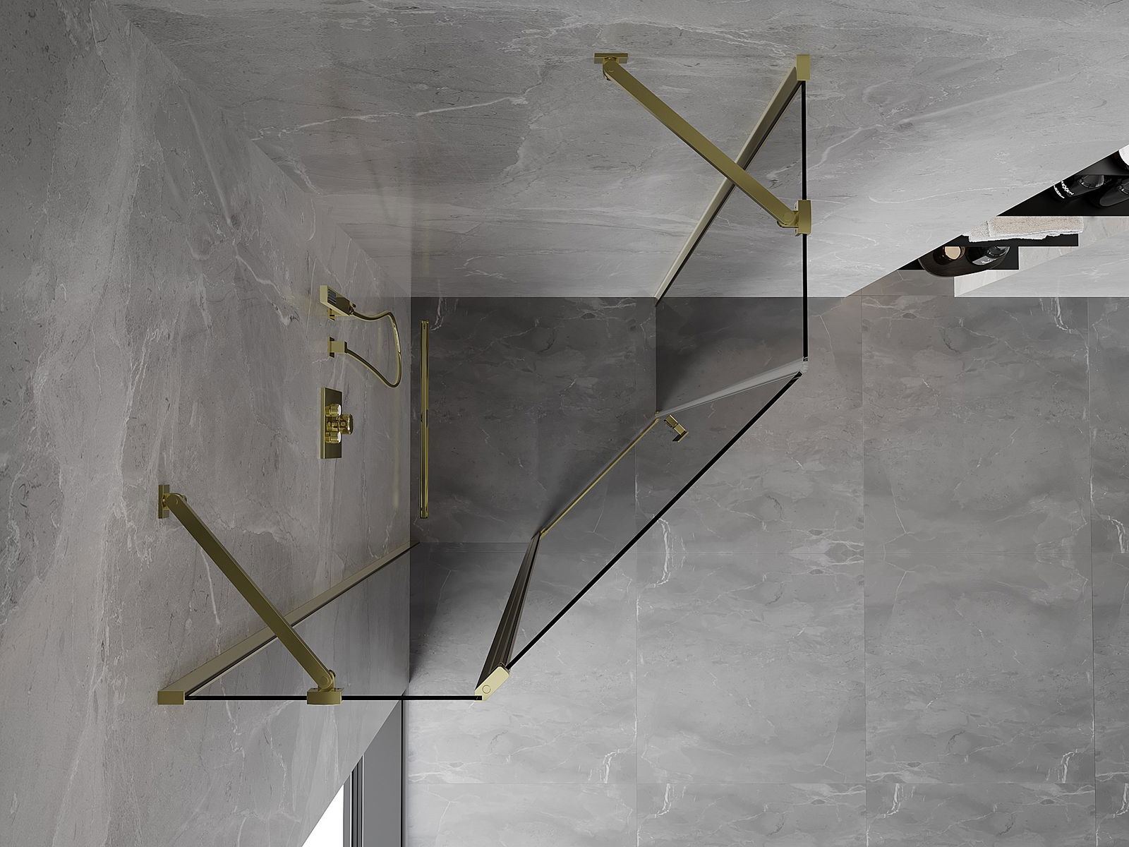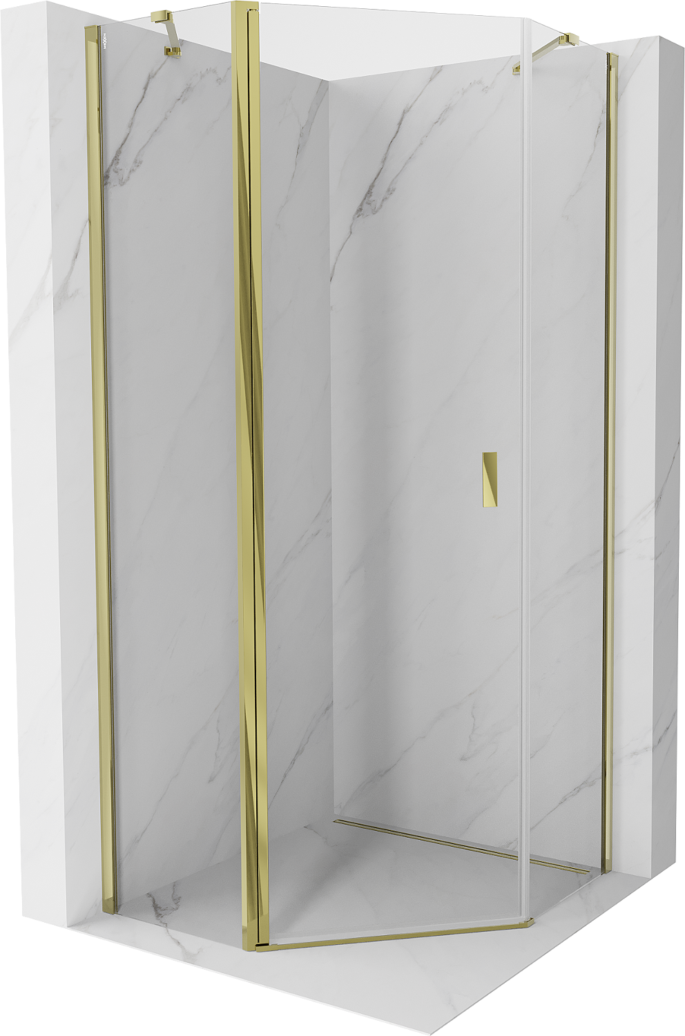 Mexen Mist piecstūrveida veramas dušas kabīne 90 x 90 cm, caurspīdīga, zelta - 8A8-090-090-50-00
