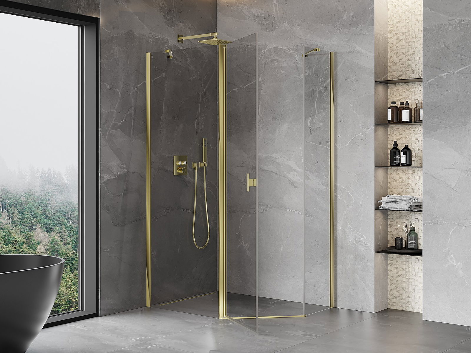 Mexen Mist piecstūra asimetrisks dušas kabīne 100 x 90 cm, caurspīdīga, zelta - 8A8-100-090-50-00