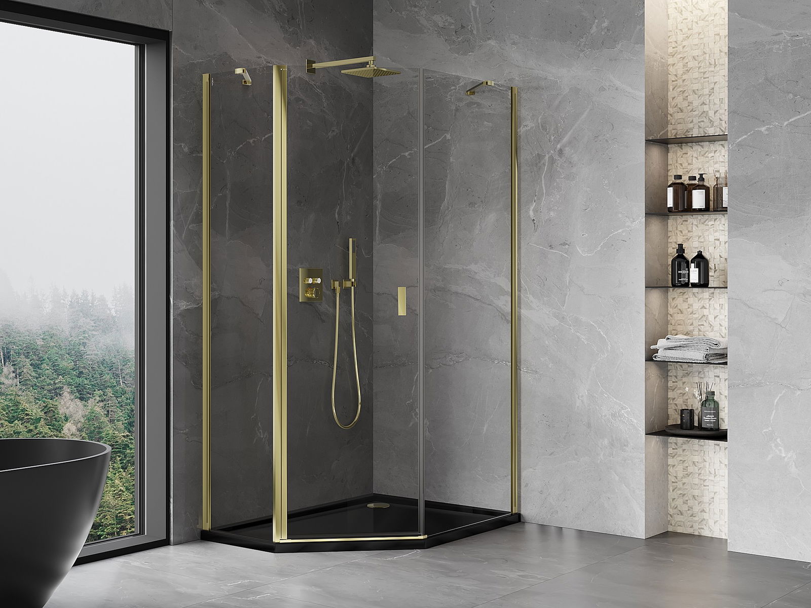 Mexen Mist piecstūra asimetriska atverama dušas kabīne 90 x 100 cm, caurspīdīga, zelta - 8A8-090-100-50-00