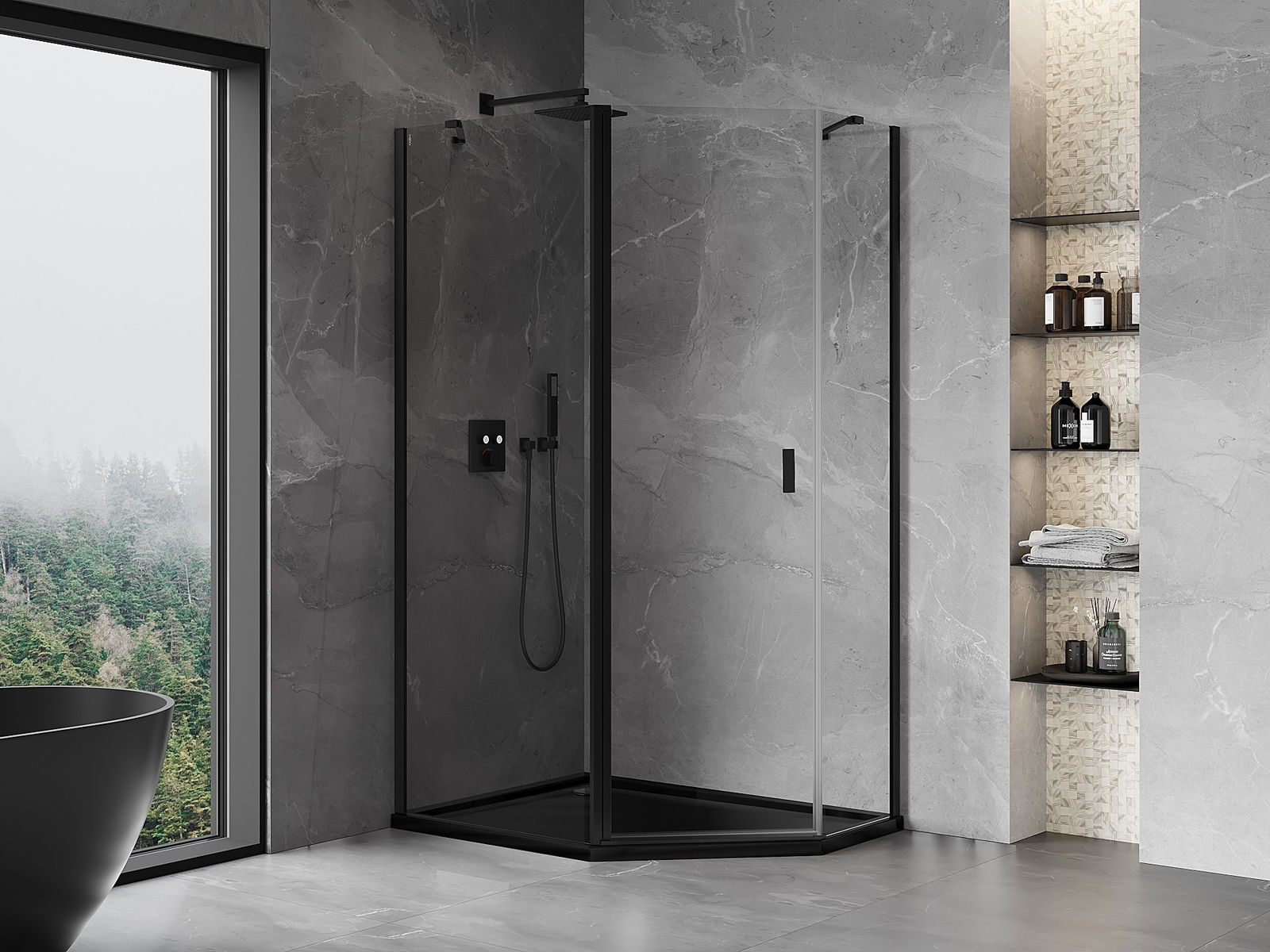 Mexen Mist piecstūra asimetriska dušas kabīne ar veramām durvīm 90 x 80 cm, caurspīdīga, melna - 8A8-090-080-70-00