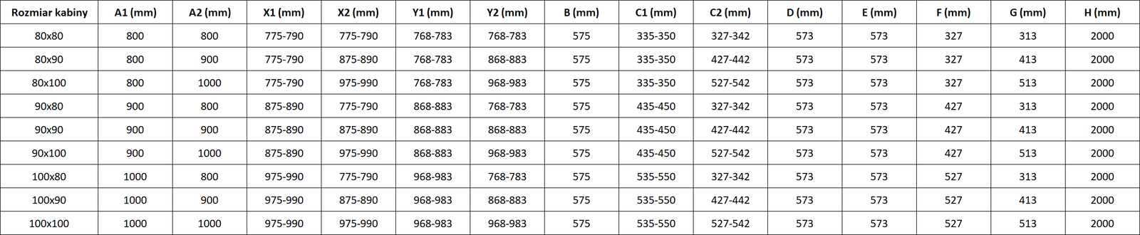 Izmērs: 90x90 cm (kreisās durvis 90 cm, siena 90 cm)