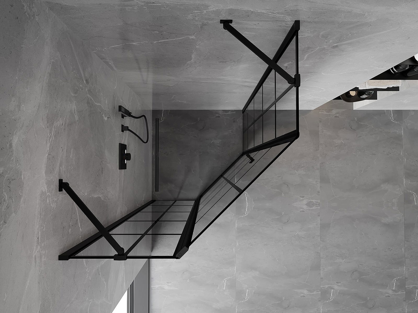 Mexen Mist piecstūra atvērta kreisā dušas kabīne 90 x 90 cm, melns režģis, melns - 8A8-090-090-70-77-L
