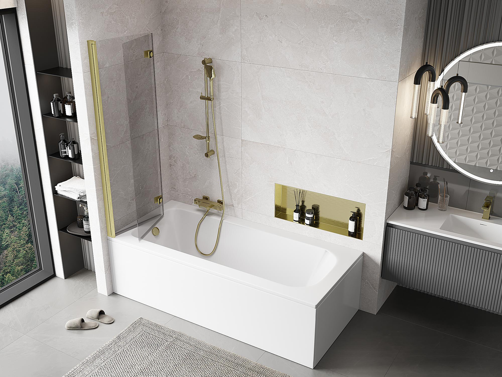 Efektīva aizsardzība pret ūdens izšļakstīšanos peldēšanās laikā. Ekrānam ir blīves, kas ideāli pielāgojas stikla virsmai un vannas malai. Funkcionāls risinājums, kas nodrošina drošību un vieglu tīrību.