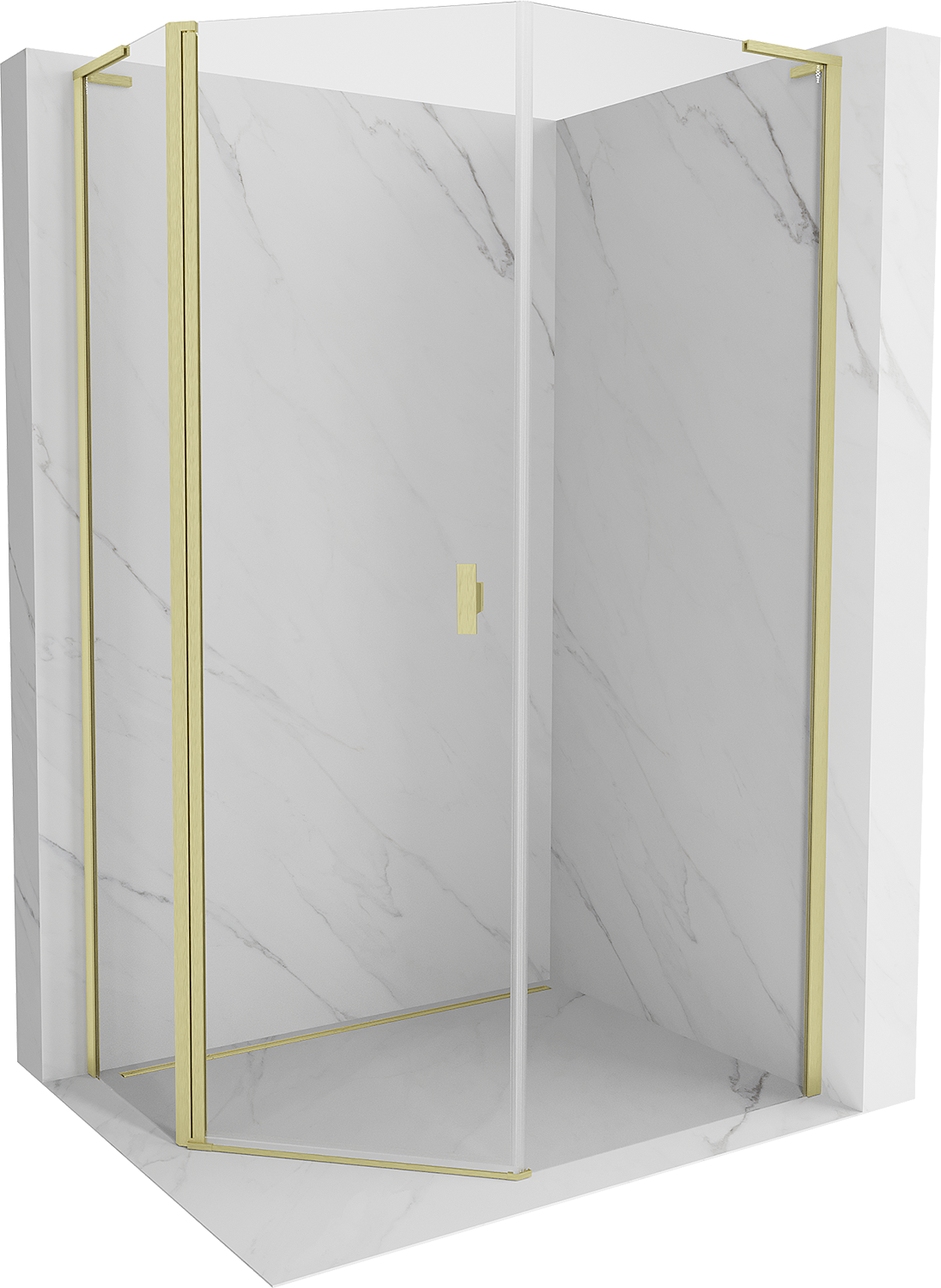 Mexen Mist L asīmētiska piecstūra dušas kabīne ar veramām durvīm 80x90 cm, caurspīdīga, zelta sukāta - 8A8L-080-090-55-00
