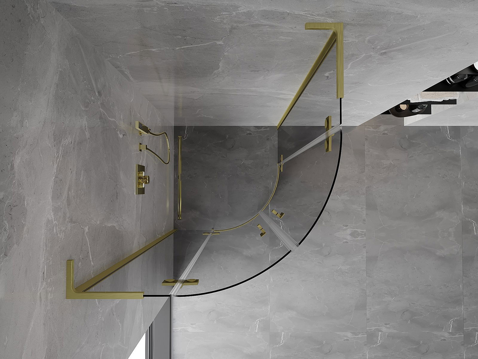 Mexen Mist L dušas kabīne pusapaļa atverama 90 x 90 cm, caurspīdīga, matēts zelts - 8A33L-090-090-55-00
