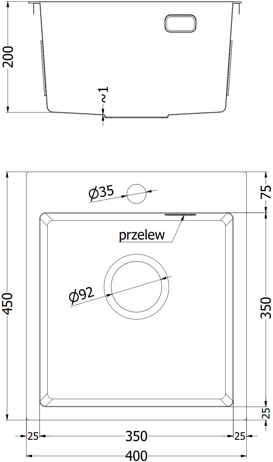 Mexen Solix nerūsējošā tērauda izlietne ar 1 nodalījumu 400 x 450 mm, inox - 6401401000-01