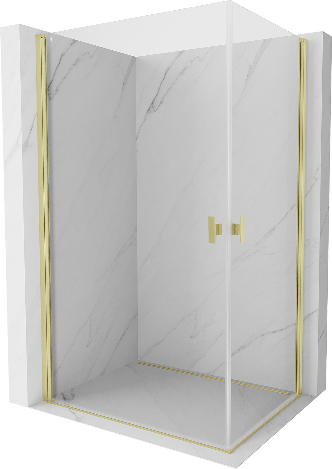 Mexen Mist-B Duo dušas kabīne ar veramām durvīm 80 x 75 cm, caurspīdīga, matēts zelts - 8A2-080-075-55-00