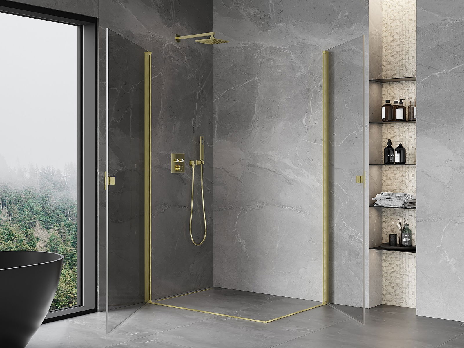 Mexen Mist-B Stūra dušas kabīne, 100 x 90 cm, caurspīdīga, pulēta zelta krāsā - 8A2-100-090-55-00