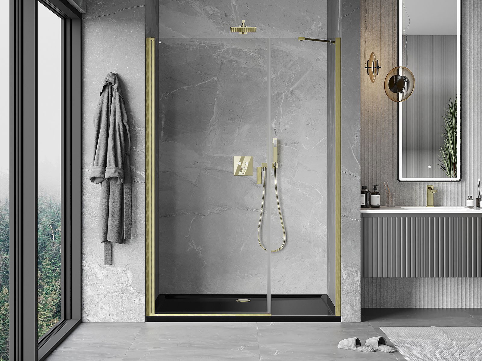 Mexen Mist-B atveramas dušas durvis 115 cm, caurspīdīgas, zeltītas matētas - 8A2-115-001-55-00