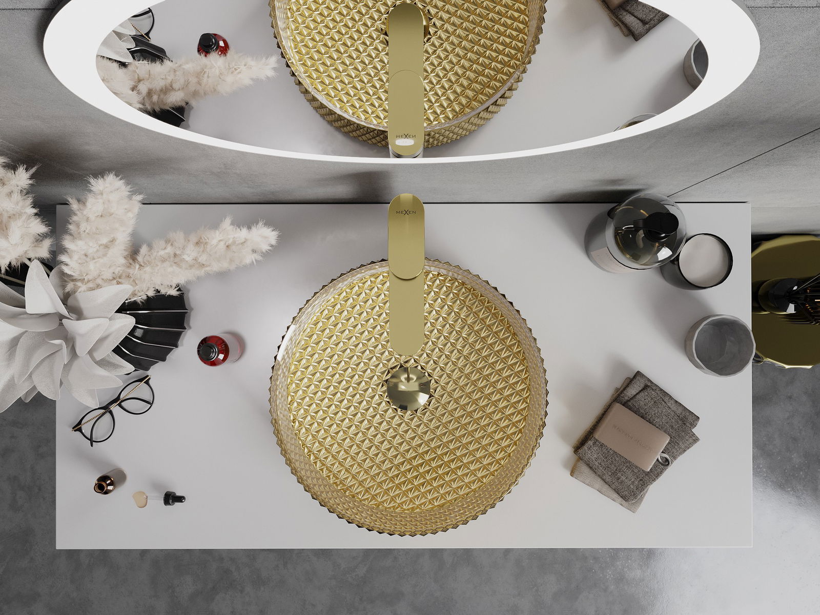 Mexen Aura stikla uz virsmas izlietne 39 x 39 cm, zelta - 24013952